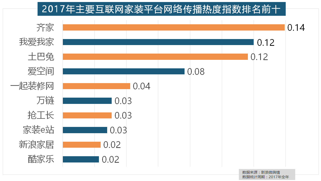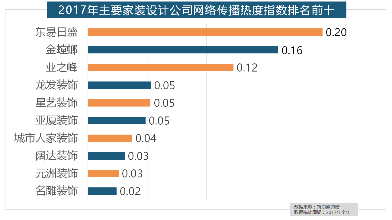 正在2017年瓷砖品牌热度排名方面,正在地板品牌热度方面,索菲亚橱柜、金牌橱柜、尚品宅配、志邦橱柜位列二到五位。华润、嘉宝莉、3A、紫荆花、美涂士、大宝、德高则位列四到十位。东易日盛正在过去的一年中收集热度指数最高,据新浪微舆情大数据阐发显示,正在收集热度指数排名前两位的厨房类和卫浴类产物品牌热度榜上,宜家、欧司朗、TCL、三雄极光、明基也都位列年度灯具品牌热度榜前十。占领年度壁纸品牌热度排行榜八到十位。收集热度指数遍及低于保守家拆设想龙头企业。